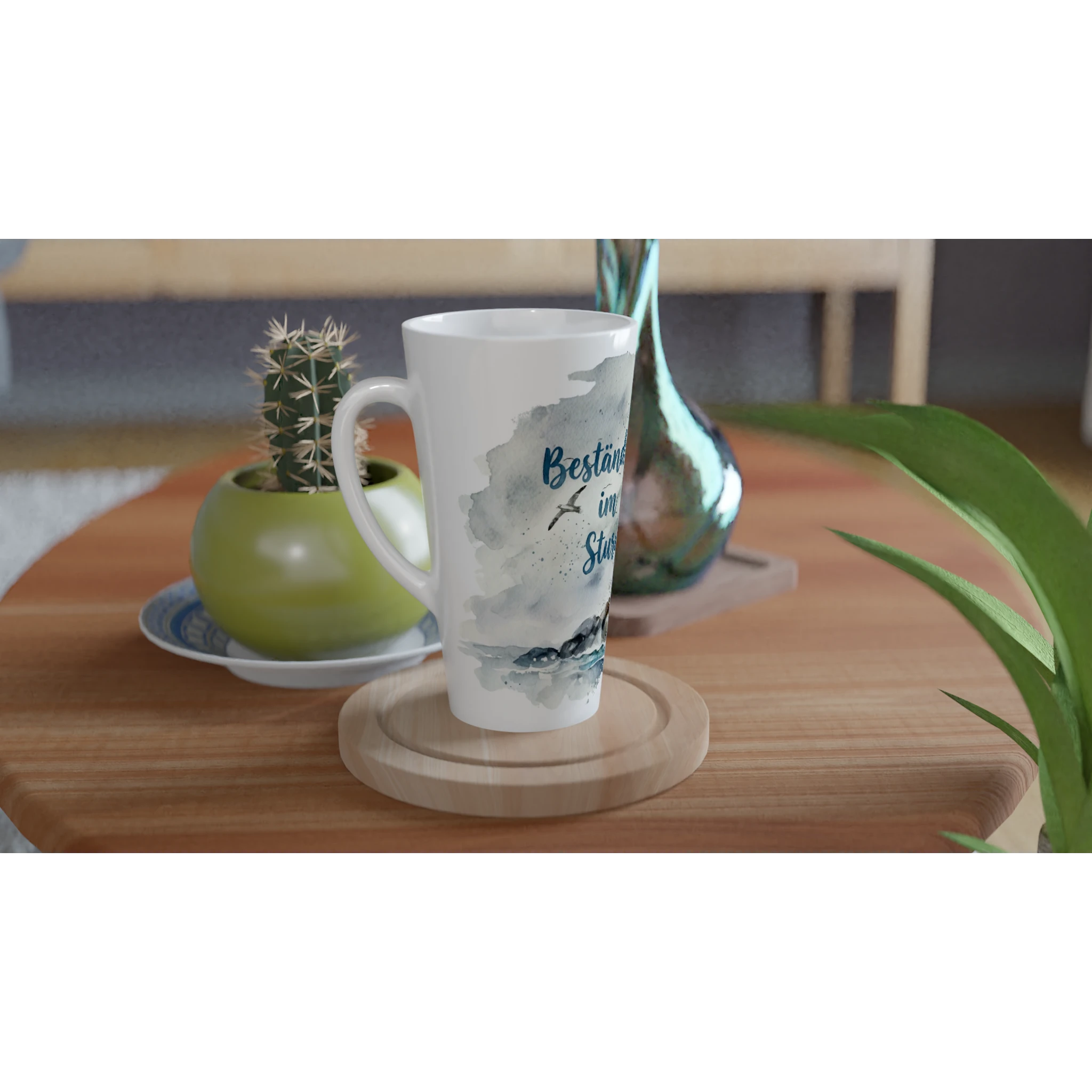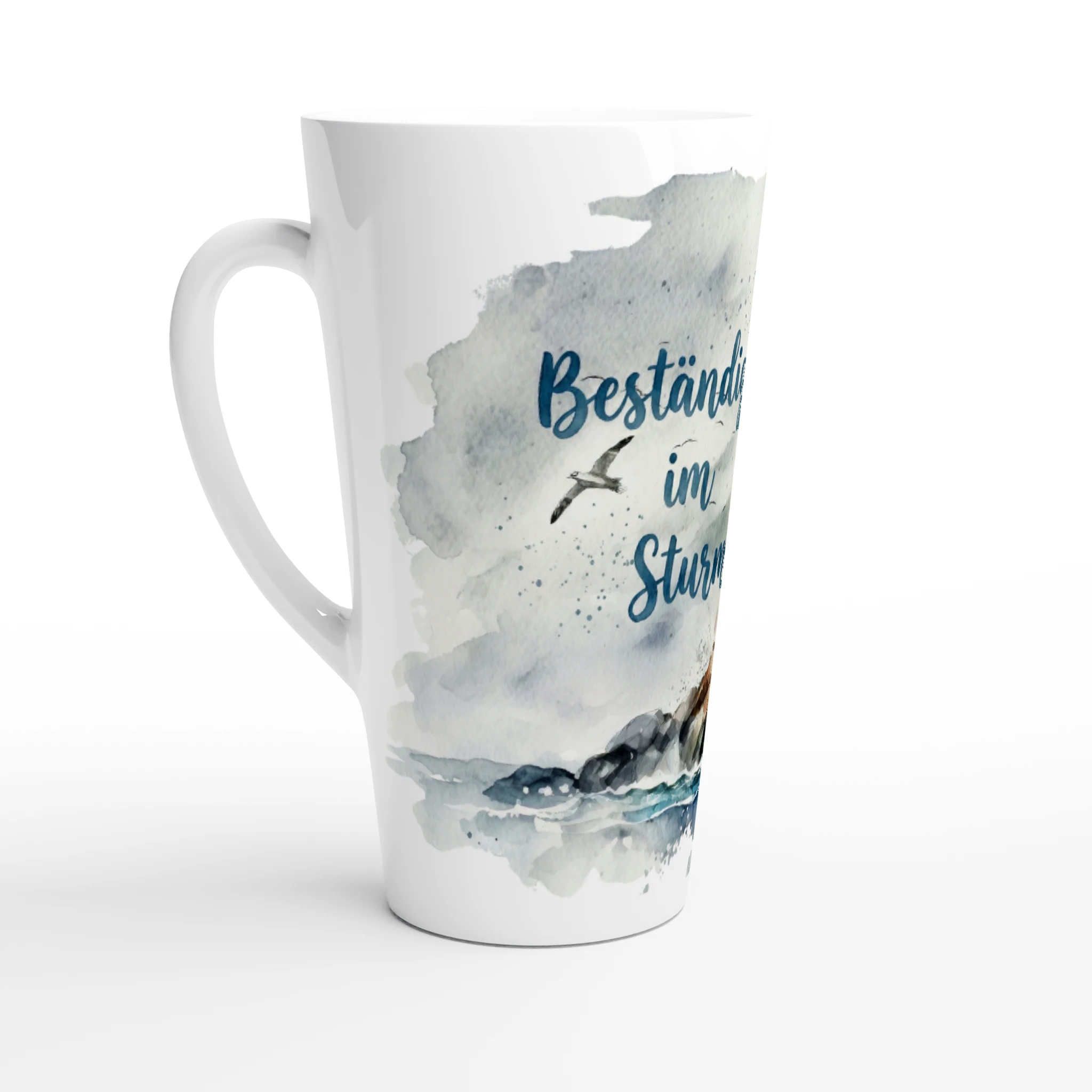 Beständig im Sturm Latte Tasse 440 ml – maritime Aquarelltasse