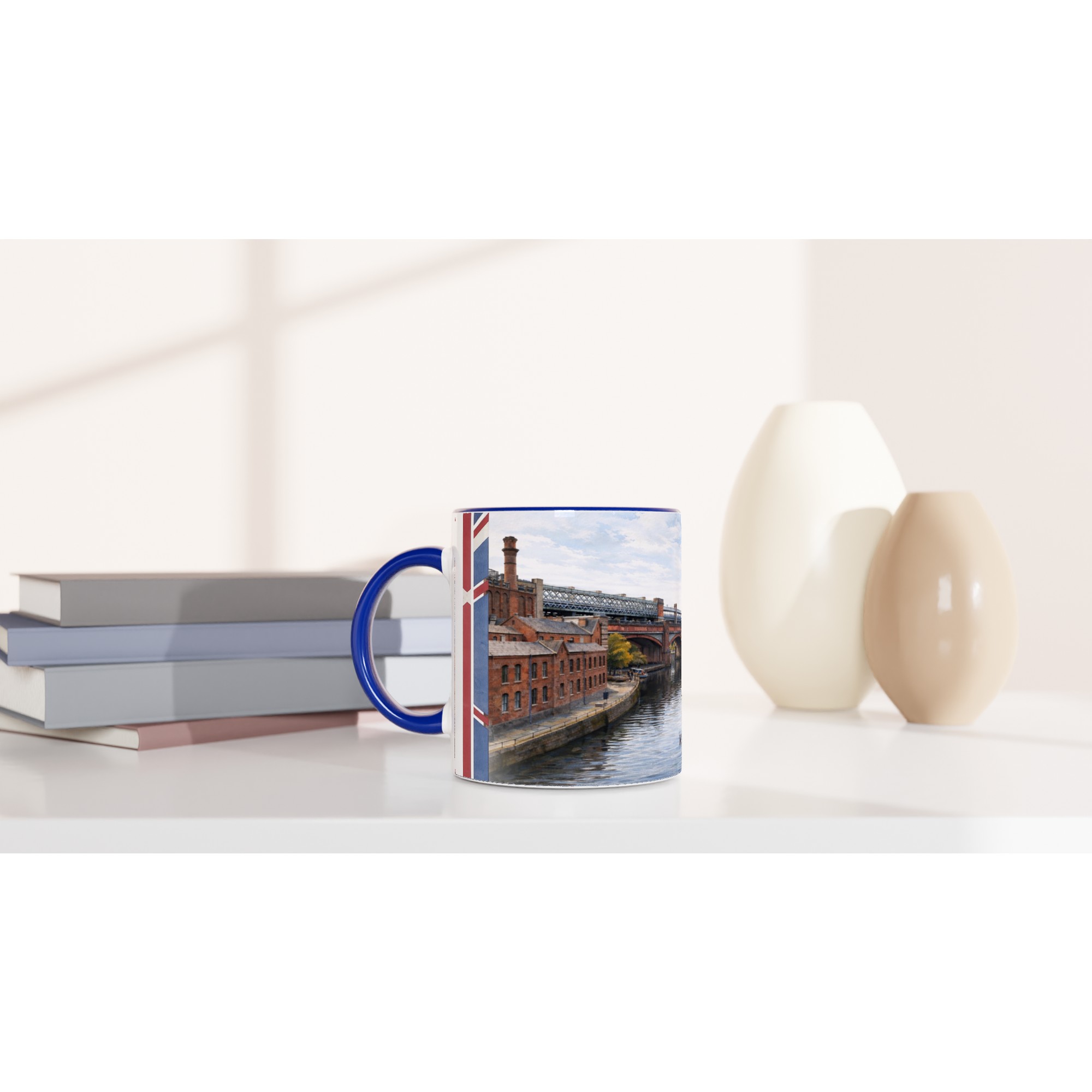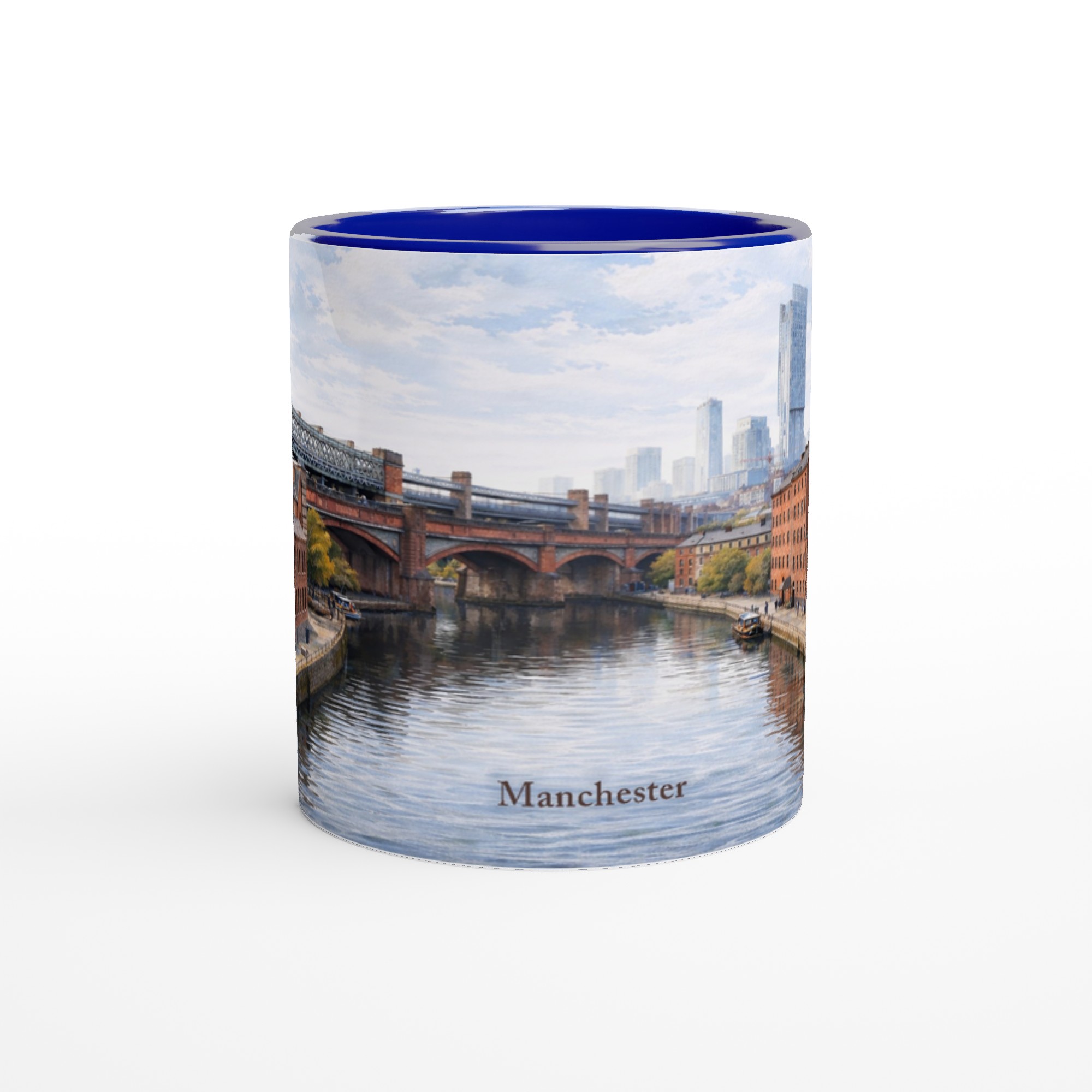 Die Manchester Aquarell Tasse gehört zur Serie English City Portraits und zeigt eine Stadtlandschaft voller Charakter, Struktur und stiller urbaner Präsenz. Das handillustrierte Motiv verbindet typische Kanalarchitektur, markante Backsteingebäude, eiserne Brücken und ruhiges Wasser zu einer Szene, die Manchester nicht nostalgisch verklärt, sondern atmosphärisch, kraftvoll und zeitlos erzählt. Erhältlich ist die Tasse in klassischem Weiß sowie als Blue Edition und Red Edition mit farbiger Innenfläche und passendem Henkel.