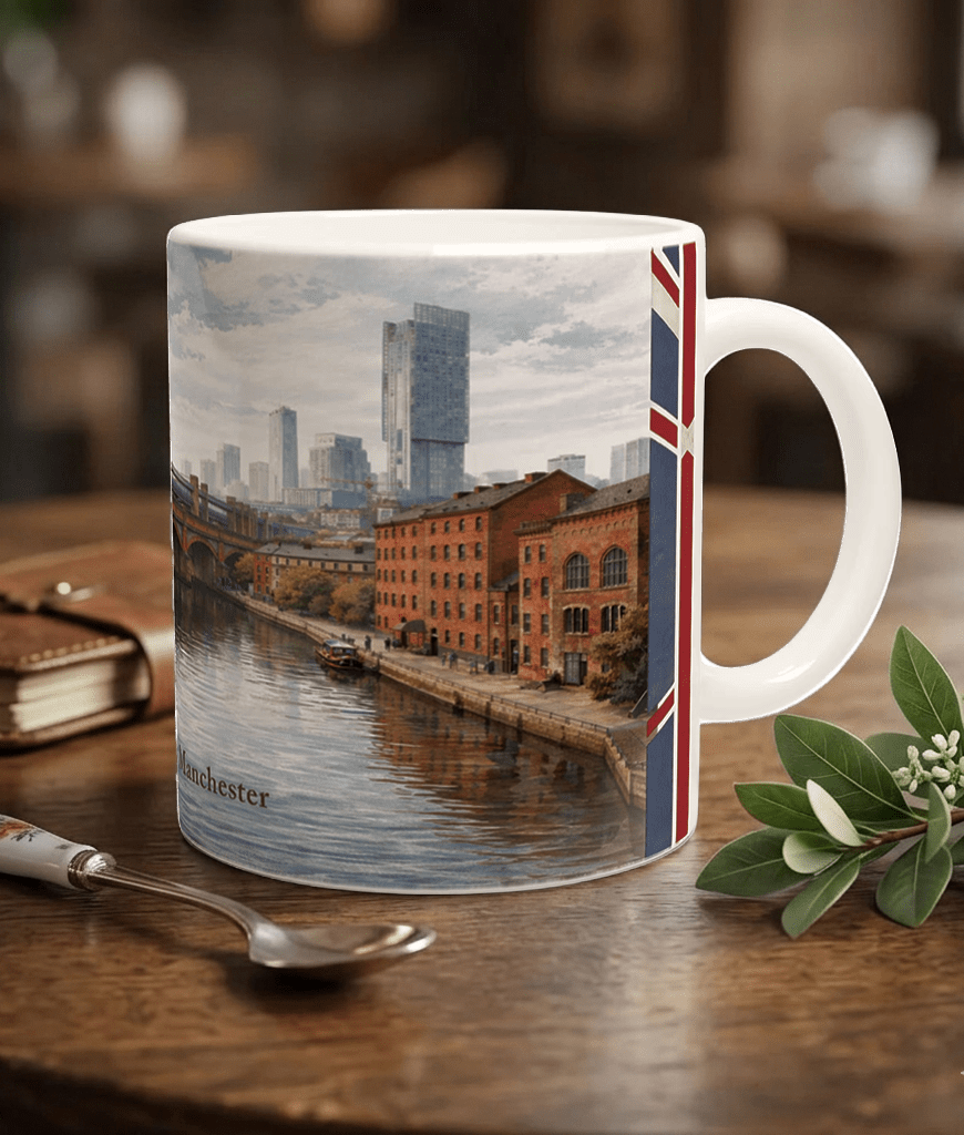 Die Manchester Aquarell Tasse ist eine schöne Geschenkidee für England-Fans, Manchester-Reisende, Architekturfreunde und Menschen, die urbane Motive mit ruhiger, hochwertiger Bildsprache schätzen. Sie verbindet Wiedererkennbarkeit mit Charakter und wirkt dadurch stilvoll, ohne dekorativ laut zu werden.