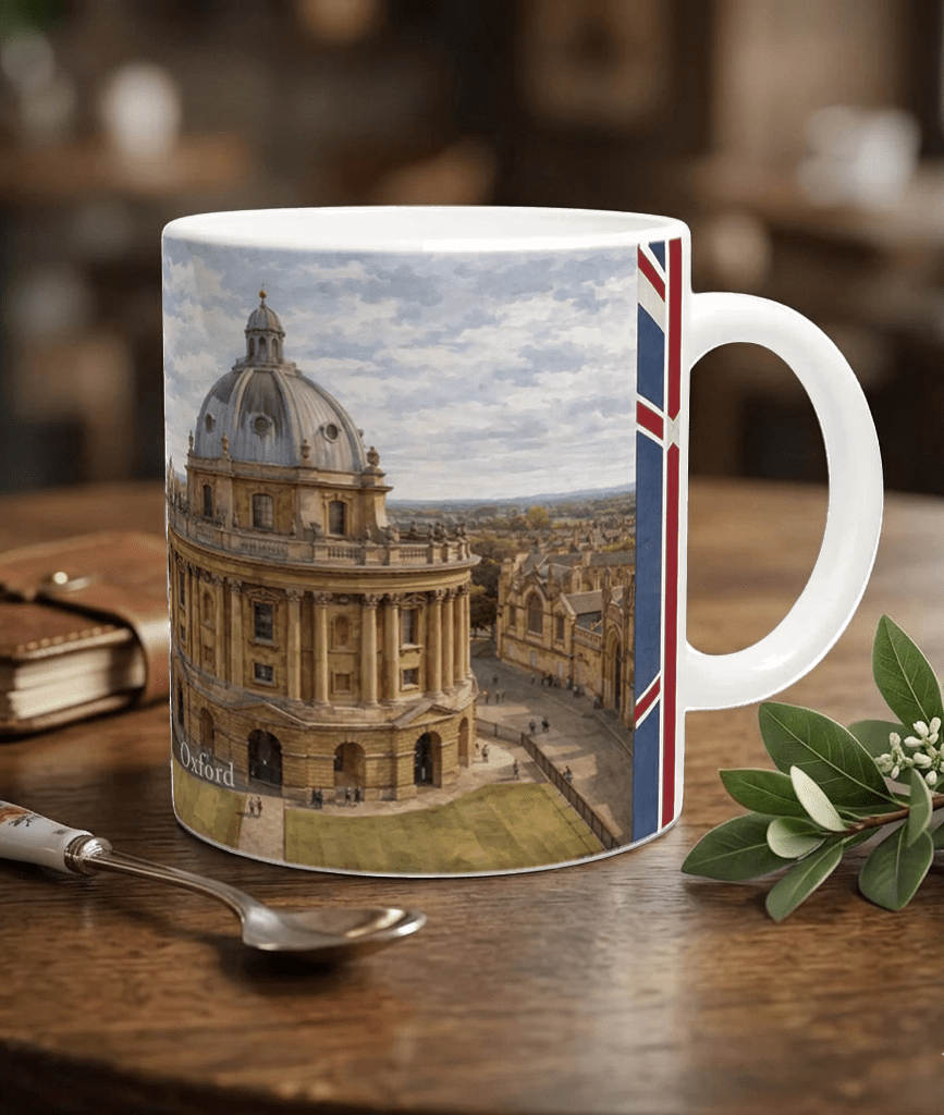 Die Oxford Aquarell Tasse 330 ml ist eine schöne Geschenkidee für England-Fans, Oxford-Reisende, Architekturfreunde und Menschen, die klassische Universitätsstädte mit ruhiger, hochwertiger Bildsprache schätzen. Sie verbindet Geschichte, Bildung und Stadtraum zu einer Darstellung mit Stil und Wiedererkennungswert.